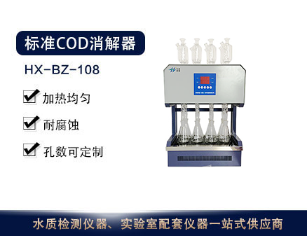 HX-BZ-108型標準COD消解器采用微機技術進行定時控制加熱電爐,可對8個250ml錐形消解回流裝置同時進行加熱。達到節能、減低電力負荷、節水、提高 效率的目的。