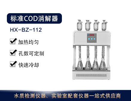 HX-BZ-112型標(biāo)準(zhǔn)COD(cr)消解器遵循了國(guó)際標(biāo)準(zhǔn)(ISO)和國(guó)家標(biāo)準(zhǔn)(GB)的基本原則,保證了回流加熱微沸2小時(shí)的消解操作,試劑溶液的配制和加入量都和GB法一致,確保可靠準(zhǔn)確的分析結(jié)果。儀器的化學(xué)溶液配制、操作和COD的計(jì)算遵照GB11914—89,低于50mg/L的COD水樣可通過稀釋滴定劑和氧化劑來提高準(zhǔn)確度,高于1000mg/L的COD水樣,可以通過水樣的比例稀釋來完成測(cè)定。
