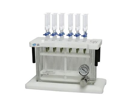 固相萃取裝置 ,使液體樣品溶液通過吸附劑,保留其中被測物質,再選用適當強度溶劑沖去雜質,然后用少量溶劑迅速洗脫被測物質,從而達到快速分離凈化與濃縮的目的。