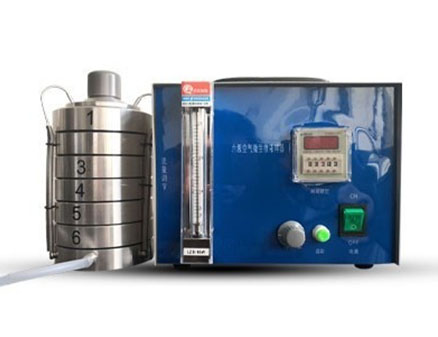 整個儀器是由撞擊器、主機(流量計)、定時器、三腳架組成。撞擊器是6層有微小孔眼的鋁合金圓盤。圓盤下放瓊脂平皿,每圓盤間有密封膠圈,在通過三個彈簧掛鉤把圓盤牢固地聯在一起。每個圓盤上有400個成環行排列、逐層減小、尺寸準確的小孔,標準采樣流量為1立方呎(28.3L/min)。當含有微生物粒子的氣流進入Z上層的采樣口后,由于氣流的逐層增高,不同大小的微生物粒子按空氣動力學特征分別撞擊在相應的瓊脂表面上。捕獲在各級上的粒子大小范圍是由該級孔眼的氣流速度和上一級的粒子截阻率而決定的。第1、2級類似人的上呼吸道捕獲的粒子,第3~6級類似人的下呼吸道捕獲的粒子,這就相當程度上復制了這些粒子在呼吸道的穿透作用和沉著部位。