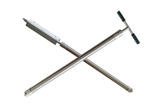 淺水區域:將擊打手柄、延長桿、采樣器連接起來。確定好采樣地點后,把采樣管垂直插入水中,感覺到采樣器不在下沉深水(水深大于5m)區域:將尾翼配重底端與采樣器鏈接,再將繩子與尾翼配重頂端相扣,緩慢投放至水里,直至下沉水底后,在往回拉尾翼配重。